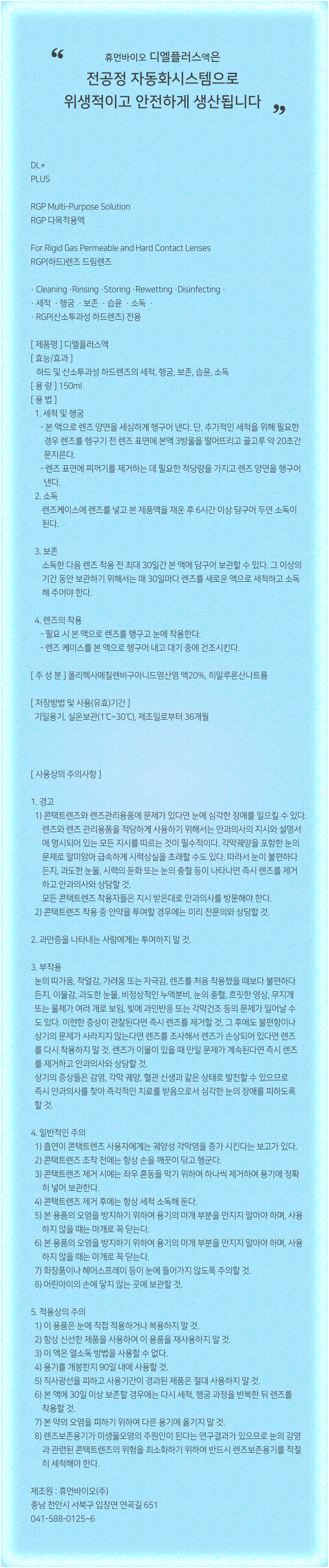 휴먼바이오 디엘플러스액 RGP멀티 150ml